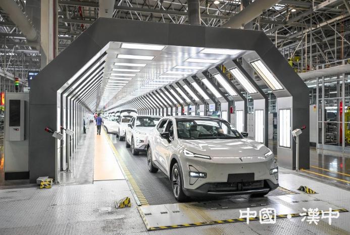 2025年1月9日在位于重庆市渝北区的长安汽车数智工厂总装车间拍摄的即将下线的新能源汽车。新华社记者王全超摄