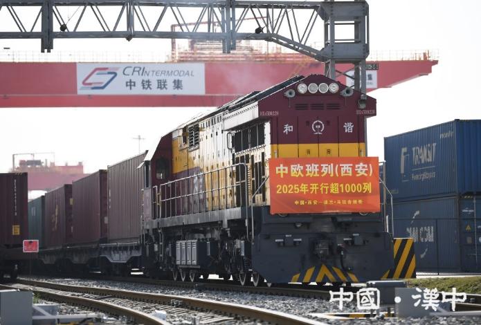 2025年3月21日,满载货物的X8489次中欧班列在西安国际港站准备发车。新华社记者李一博摄