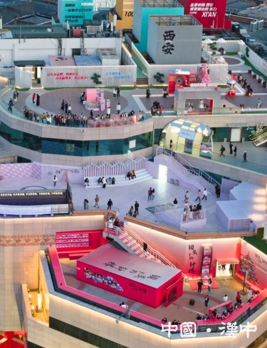 2025年3月19日,游客在西安开元商城观景平台上拍照游玩(无人机照片)。新华社记者邵瑞摄