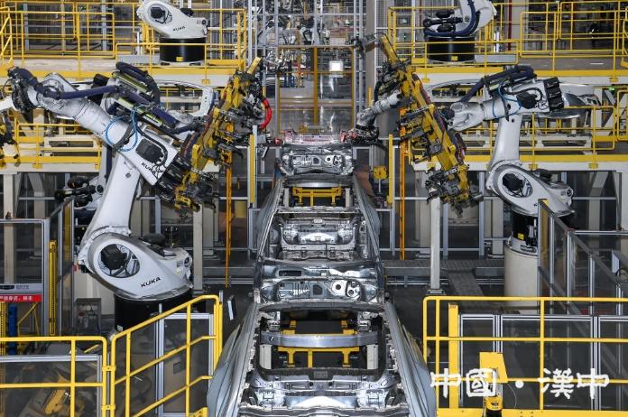 2025年2月26日在吉利汽车陕西宝鸡制造基地焊装厂拍摄的自动化焊接线。新华社记者邹竞一摄