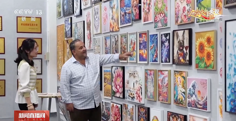 一位希腊采购商在广交会上被钻石画产品吸引,专程来到位于浙江义乌的企业了解情况,他希望通过合作,为这类产品在欧洲打开更加宽阔的市场。