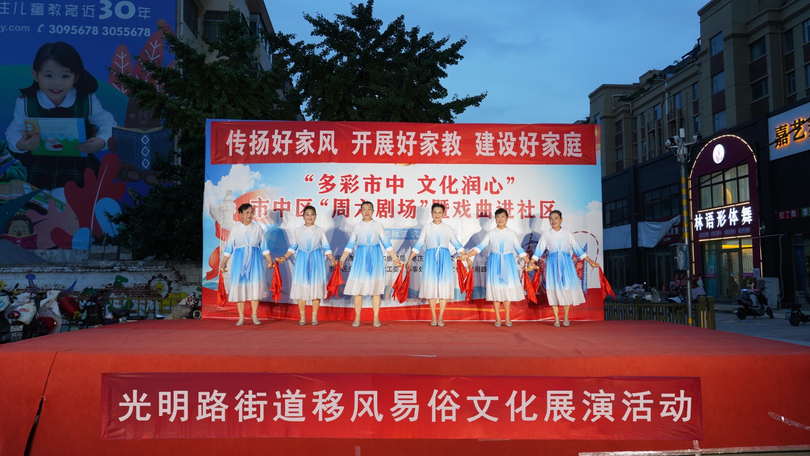 为弘扬传承中华优秀历史文化,推动移风易俗,培育诚信文化,丰富居民精神文化生活,近日,光明路街道远航社区新时代文明实践站组织恒星艺术团,以移风易俗为主题,通过群众喜闻乐见的艺术形式,开展小戏小剧展演,让文明新风尚深入人心。